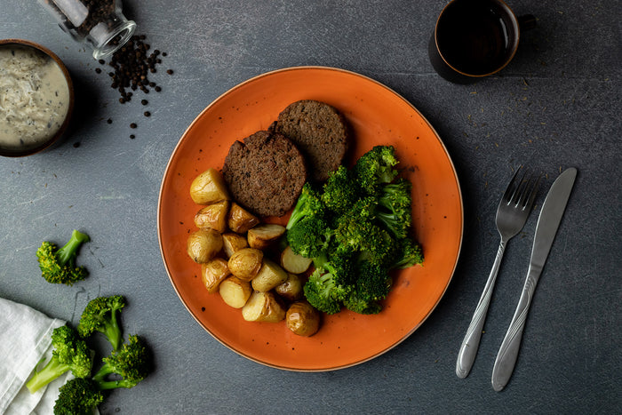 potato, cream, garlic, salt, pepper, cauliflower, green beans, olive oil, garlic, oregano, marjoram, beef, onion, egg, potato flakes, coriander, turmeric, chili, fennel, ginger, rapeseed oil, thyme, sage, mushroom, cream.