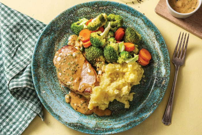 with Mushroom Cream Sauce & Garlic Mashed Potato.
