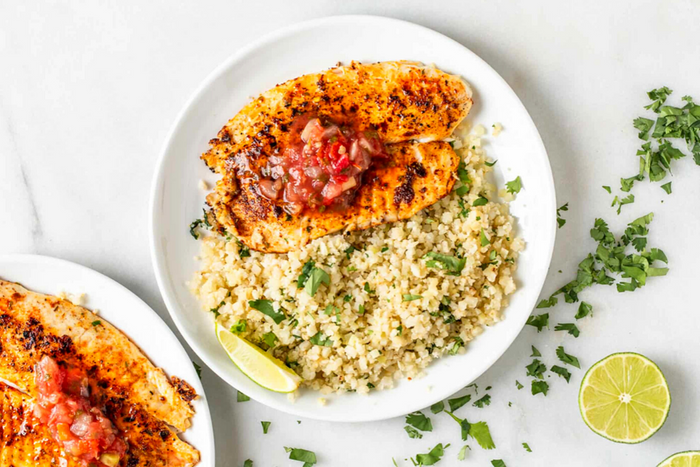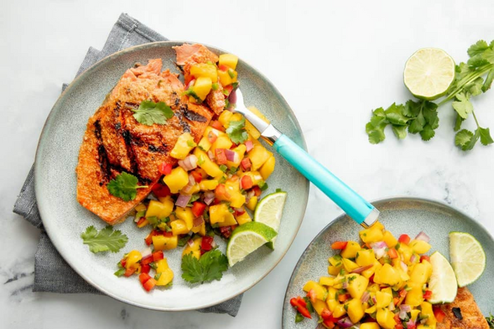 with Mango Kale Salsa & Cilantro Lime Dressing.