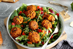 quinoa, dried mango, dried apricot, cocktail onion, salt, pepper, beetroot, chickpea, black bean, kidney bean, white bean, lemon juice, cumin, paprika, smoked paprika powder, carrot, oil, potato flour, onion, soybean.