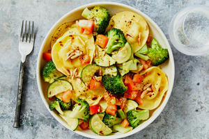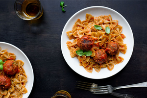 pasta, crushed tomato, tomato puree, vegan cream, basil, oregano, salt, pepper, soy, lentil, zucchini, broccoli, garlic.