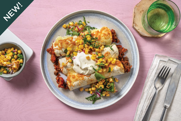 beef, corn, black beans, crushed tomato, red onion, garlic, oregano, cumin, smoked paprika, bay leaf, paprika powder, tortilla wrap (contains wheat), cheese, carrot, carrot, bell pepper, red onion, ginger, parsley.